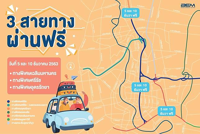 การทางพิเศษฯ แจ้งยกเว้นค่าทางด่วน 3 เส้นทาง อีก 1 วัน คือ วันพฤหัสบดีที่ 10 ธันวาคม 2563 เนื่องในวันรัฐธรรมนูญ เริ่ม.