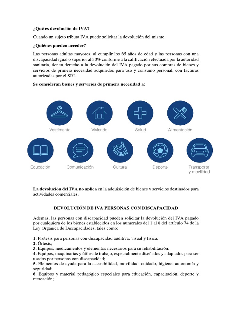 Ayudas disponibles para personas con discapacidad o diversidad funcional devolución del iva. La devolución del iva es una compensación económica para los hogares en situación de pobreza que busca proteger y mejorar su capacidad de consumo durante y después de la pandemia del coronavirus./ la devolución del iva tiene una cobertura a nivel nacional.
